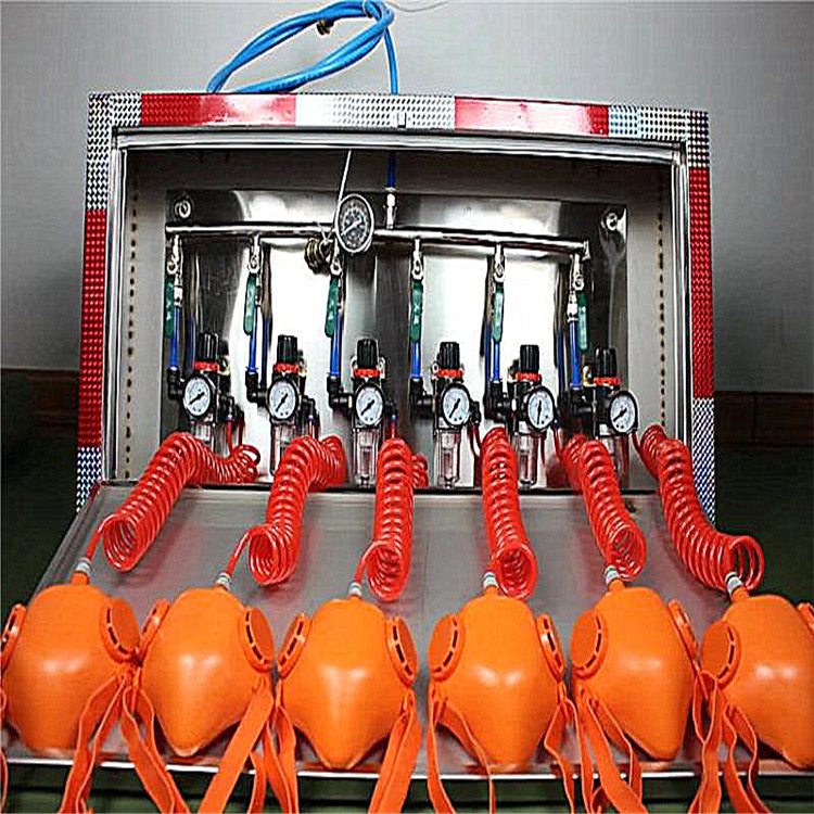 礦井壓風(fēng)自救裝置一般形成系統(tǒng)后使用,即由若干組壓風(fēng)自救裝置安裝在同一個地點形成壓風(fēng)自救站,每組一般由3~5個頭組成,壓風(fēng)自救裝置,布袋式壓風(fēng)自救裝置每個地點裝多少個頭,應(yīng)視該工作場所的工作人數(shù)而定,其安裝頭數(shù)應(yīng)大于在該場所工作的人數(shù)。